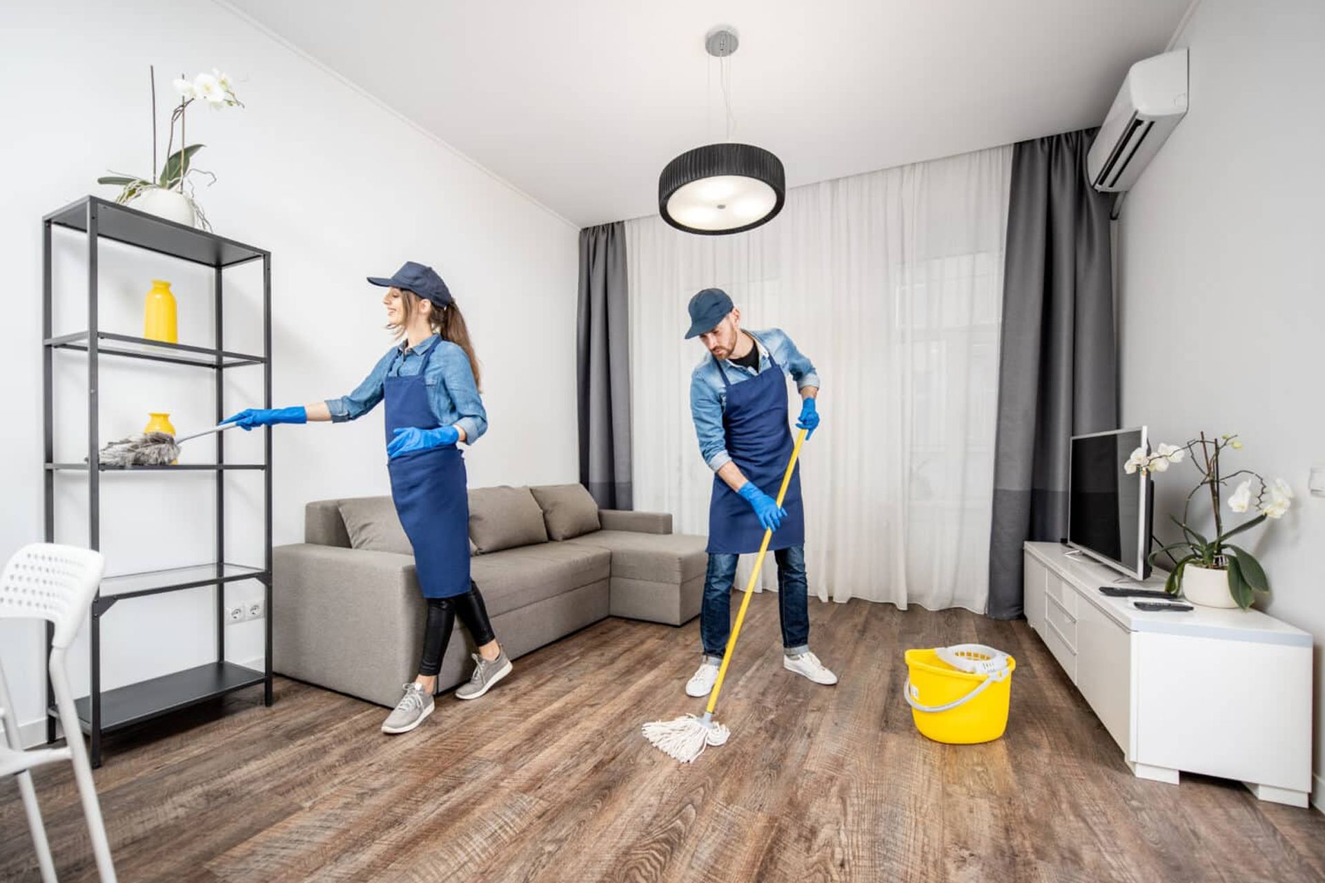 Sweeping, mopping, and spot treatment for hard floors; full vacuuming of carpeted areas.